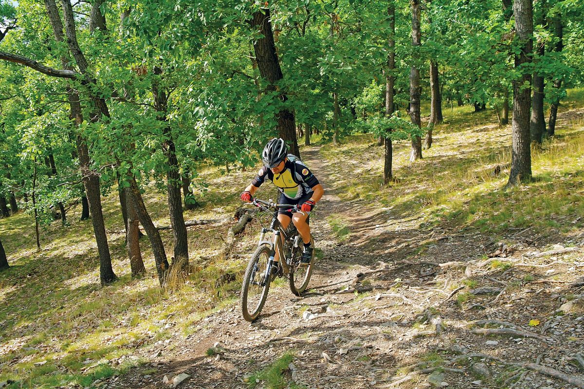 doporučené kolo: hardtail je schopen v pohodě zvládnout celou trasu, celoodpružený stroj je příjemnější vzhledem k množství kořenů